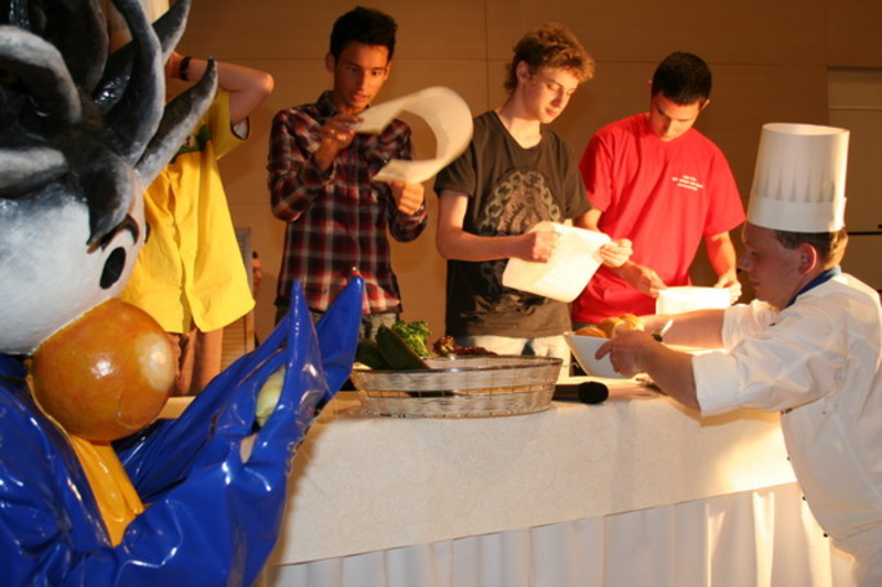 Es soll eine kalte Platte mit einigen Besonderheiten zubereitet werden. Die Zuschauer sind gespannt und nehmen Stehplätze im vorderen Bereich ein. Die Jugendlichen haben allerdings etwas Zeit und deswegen geht es erstmal mit einem Filmchen weiter.