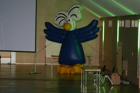 Pünktlich um sieben werden die Türen geöffnet. In Scharen strömen die Zuschauer in den ehemaligen Turniersaal. Neben der Bühne steht ein riesiger mit Luft aufgeblasener Chessy. Drei Leinwände und die Landesfahnen der einzelnen Bundesländer vervollständigen das Bühnenbild. Der "echte" Chessy läuft im Saal umher und scheint jeden Zuschauer einzeln zu begrüßen.