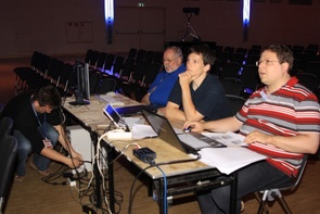 In knapp einer Viertelstunde ist Einlass für die insgesamt knapp 1000 Beteiligten der DEM 2009. Bis dahin wuseln aber noch viele Techniker, Teamer und Hotelkräfte im großen Saal herum, um aus dem Turniersaal eine große feierliche Halle für die Siegerehrung zu gestalten.