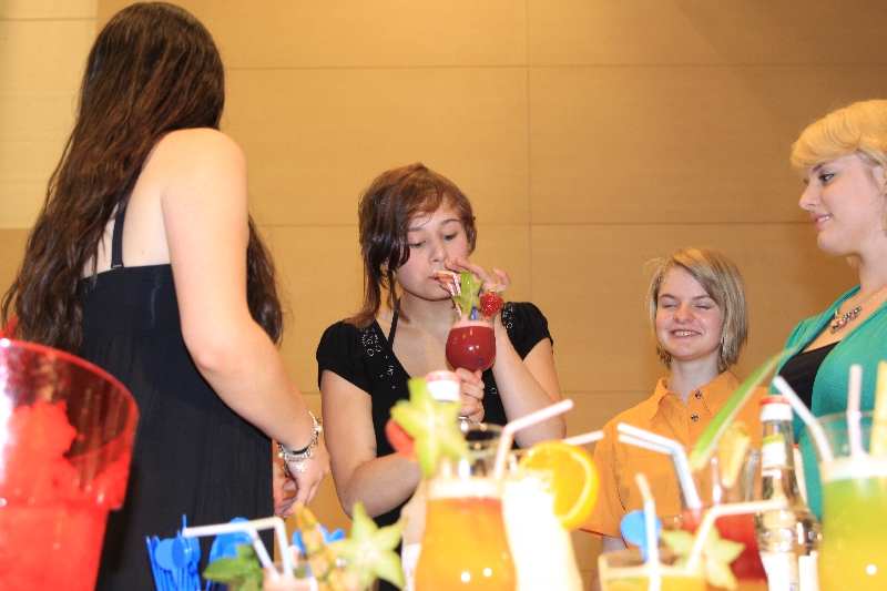 Sie stellen die Jury für die U18-Cocktails dar. Es fallen Urteile wie "dürftiger Nachgeschmack", "schön bunt" und "sehr erfrischend" bei den Damen. Ist das schon der Sieg?