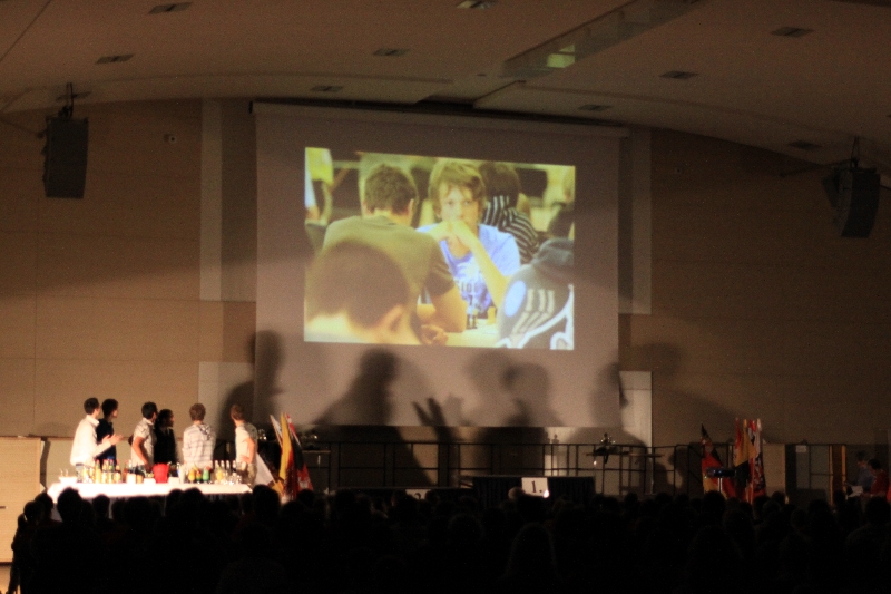 Während die U18er noch immer mit ihren Cocktails beschäftigt sind, sie probieren und für gut befinden, wird ein Video mit Bildern und Video-Aufnahmen der diesjährigen DEM gezeigt werden. Deutlich erkennt man, welche Spieler aus welcher Delegation kommt, immer diese Ecke des Saals jubelt.