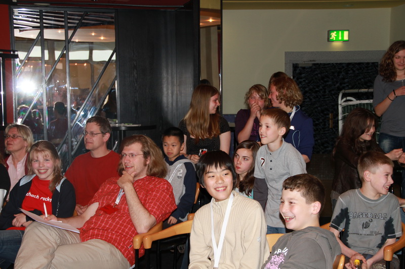 Zuletzt noch ein Blick auf das DSJ-Team: Hier sind alle Bereiche fleißig - im Presseteam wird bis spät in die Nacht gearbeitet, die sportliche Leiterin löst Schachaufgaben am Demobrett, das Bulletinteam entschlüsselt eifrig Partieformulare und am Verkaufsstand läuft sowieso alles rund.
