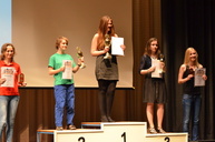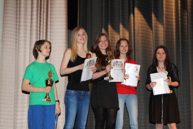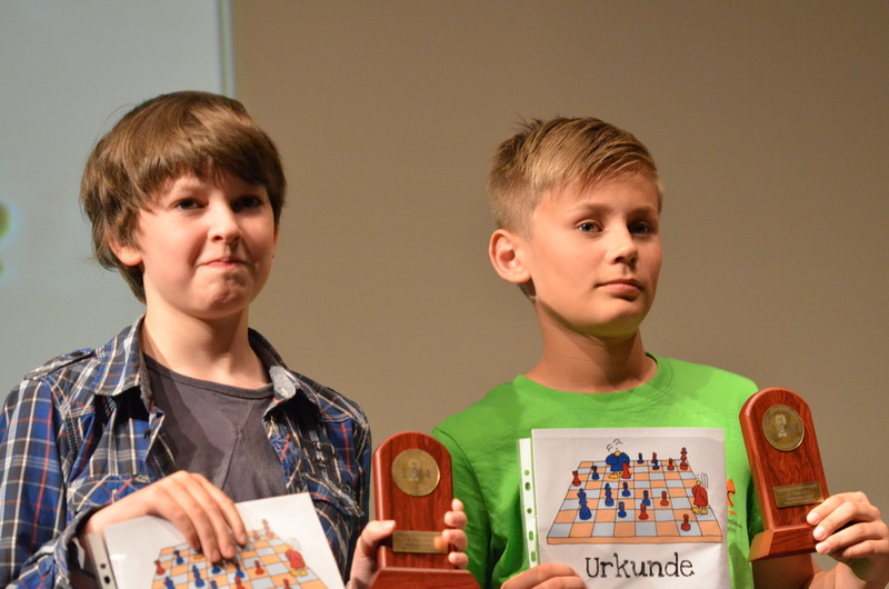 20:20: Warum statt 15 nur 14 Kinder auf der Bühne stehen? Ganz einfach: Vitalia hat die Seiten gewechselt. Zwar ist sie Meisterin in der Mädchenklasse, belegt aber auch Platz 9 in der Gesamtwertung! Angesichts des überragenden Feldes eine exzellente Leistung und pure Werbung für Mädchenschach!