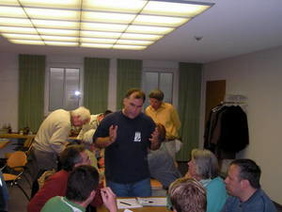 Am Samstag hielt der Holländer Cor van Wijgerden, der zusammen mit Rob Brunia die Stappenmethode entwickelte, einen hervorragenden Vortrag über sein Konzept, das genau auf die Befindlichkeiten von Kindern eingeht. Man mekrt ihm und damit seiner Lehrmethode an, dass Cor van Wijgerden Grundschullehrer war, bevor er sich als Schachtrainer selbstständig machte.