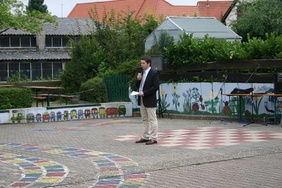 Kurz vor den Sommerferien konnte der Grundschule Wachenheim (Rheinland Pfalz) noch das Gütesiegel "Deutsche Schachschule" durch Simon Martin Claus vom AK Schulschach der DSJ überreicht werden. Vor vielen Jahren rief Harald Hüttner durch die entstandene Ganztagsschule die Schach AG an der Schule ins Leben. Er bekam mit dem "Schach-Tempel" einen eigenen Schachraum. Der Förderverein unterstützt seit Jahren die AG großzügig bei der Anschaffung von Material und der Ausrichtung der schuleigenen Schachturniere. Die AG erfreut sich großer Beliebtheit, nicht zuletzt durch die offene und spielerische Herangehensweise durch Herrn Hüttner. Größter Erfolg seiner Schützlinge war der Einzug ins Finale der Rheinland-Pfälzischen Schulschach Meisterschaft. Auf dem Schulhof wurde ein Freilandschach errichtet, auf dem die Schüler in Eigenverantwortung in jeder Pause Schach spielen können. In der Schule können sich Schüler und Eltern gleich an mehreren Stellen über die Aktivitäten der Schach AG an Aushängen informieren. Die Homepage der Schule hat ebenfalls einen eigenen Bereich für die Schach AG, wo Herr Hüttner regelmäßig Schachrätsel für seine Schüler veröffentlicht. Neben den Standard-Lehrwerken hat Herr Hüttner eigene Arbeitsblätter und Power-Point-Präsentationen für seine AG-Stunden entwickelt. Aufgrund der großen Nachfrage gibt es mittlerweile 2 Schach AG´s, eine für Anfänger und eine für Fortgeschrittene. Hervorragende Unterstützung findet Herr Hüttner bei der Schulleitung, in Person seiner Frau, welche die Schulleiterin der Schule ist. Frau Hüttner erfüllt ihrem Mann alle Wünsche für die Schach AG und versucht Kooperationen mit anderen Schulen und Vereinen aufzubauen. Im Rahmen einer Feierstunde auf dem Schulhof am Freilandschachspiel wurde nun der Grundschule Wachenheim das Gütesiegel feierlich übergeben. Zahlreiche Ehrengäste waren anwesend und erfreuten sich an dem Beiprogramm der Schüler.