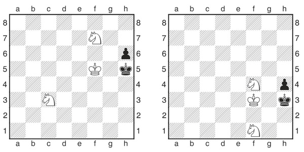 Im Moment hat Finn Helms (SC Turm Lüneburg) die besten Chancen auf den Titel. Er gewann seine Partie gegen Magnus Ermitsch (SC Borussia Lichtenberg) und hat nun einen Punkt Vorsprung auf Peter Grabs (Empor Potsdam). In beiden U10-Gruppen sind ja noch drei Runden zu spielen, die weiteren Verfolger sollten daher noch nicht aufgeben: mit drei Gewinnen ist hier noch alles drin. Ein seltenes Endspiel gab es in der Partie Bagrat Torosyan (Schachpingine Berlin) gegen Luka Xue (SV Sindorf) zu bestauen. Wir sehen den Anfang und die Schlussstellung des Endspiels, das von Bagrat mustergültig behandelt wurde.