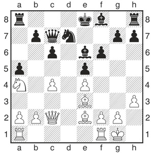 Matteo mit Schwarz sollte hier 14...b6 spielen, um den weißen Vorstoß c4-c5 zu erschweren. In der Partie geschah 14...Le7, was nach 15.c5! nebst Lc4 zu fast schon entscheidendem Vorteil führte. Lucas gewann die Partie und ist nun alleine in Führung, vor Diyor Bakiev (SV 1934 Ffm-Griesheim) und Gustaf Klühs (Borussia Lichtenberg). Die beiden Verfolger spielen jetzt in der Vorschlussrunde gegeneinand
