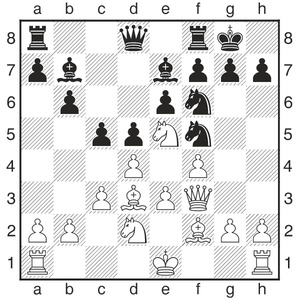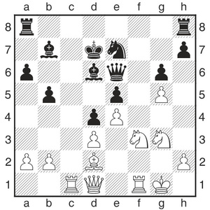 Der weiße Läufer hat sich hier auf a7 verirrt und Schwarz hätte nun mit 25...Se3 eine Gewinnstellung erhalten. Nach 25...Ta8 26.Lxc5 war die Sache alles andere als klar und Weiß gewann die Partie noch.