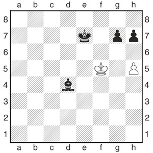Weiß versuchte hier den letzten Trick und spielte 50.h6!, worauf Schwarz nur mit 50...g6+! gewinnen kann. Schwarz spielte aber 50...gxh6? und erlaubte das bekannte Remisendspiel mit der falschen Eckfarbe des Läufers.