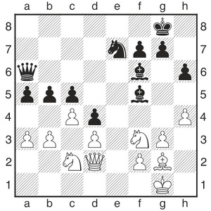 In dieser Stellung sollte Schwarz mit 19...Tg8 nebst 20...Dg6 die Königsstellung sichern und auf der g-Linie Spiel suchen. Nach dem gierigen 19...Dxc4 erhielt   Weiß nach 20.Dh4 Sd5 21.Sf5 einen Angriff, gegen den sich Schwarz nicht mehr verteidigen konnte. Mit diesem Sieg konnte Luisa zu den beiden Führenden aufschließen.