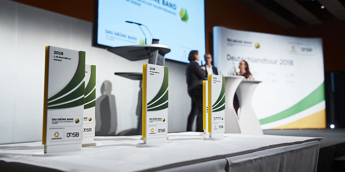 5000€ kann ein Verein gewinnen, wenn er sich für das Grüne Band bewirbt. Eine gemeinsame Initiative des DOSB und der Commerzbank, um vorbildliche Talentförderung im Verein zu belohnen.