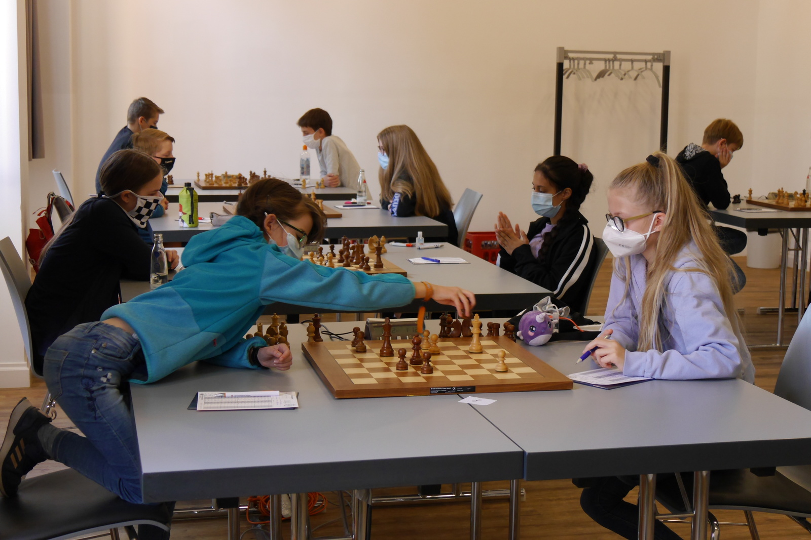 Von den gestern herausgehobenen drei Spieler:innen mit einer 100 Prozentausbeute blieb nur Jari Reuker übrig. Anastasia Vogt spielte Remis und Jana Bardorz musste sich ihrem Gegner Sebastian Marcel Haubold geschlagen geben.