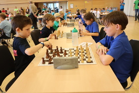 Als die Kinder aber nach der Pause wieder zurück in den Spielsaal finden, um sich zur 7. Runde an die Tische zu setzen, hat sich an ihrer Willenskraft zu gewinnen nichts geändert. Auf keinem einzigen Brett der ersten drei Tische wird Remis geschoben. Es sind alles entscheidende Partien, aber trotzdem enden die Teamkämpfe dann alle 2:2. An der Tabelle ändert sich dadurch nur wenig. Nur ein Brettpunkt liegt zwischen dem zweiten und dem neunten Platz.