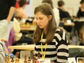 Das zweite Brett gewinnt die Favoritin Tamila Trunz. Mit einem einfachen Damengewinn beendet sie ihre Partie, kommt auf 7 Punkte und wird für Nordrhein-Westfalen Deutsche Meisterin der U14w.