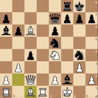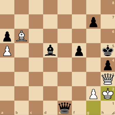 Darunter Hessen und Sachsen-Anhalt, die ihre Kontrahenten Schleswig-Holstein und Stichts-Gooise mit 6,5 zu 1,5 bezwingen konnten. Zu Hessens Sieg beigetragen hat Rosalie Werner, die in folgender Stellung den richtigen Zug fand: