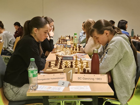 In der Zwischenzeit wurden allerdings auch Partien gespielt. Hier gelang dem SC Garching fast noch eine Sensation. Die Königskinder aus Hohentübingen strauchelten etwas und das 2:2 lag auf den Brettern. Doch die Hohentübingerinnen schafften das Blatt noch zu wenden und mit einem knappen 2,5:1,5 den Sieg zu erringen.