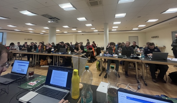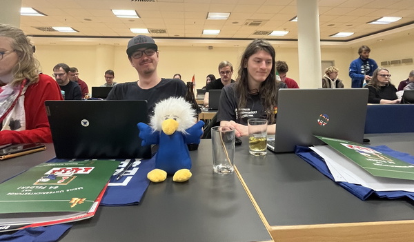 Nachdem schließlich alles zugänglich war, wurde aufgebaut, Tische wurden gerückt und die Technik getestet. Diese erwies sich insgesamt als zuverlässig. Lediglich die Internetverbindung stellte sich über das gesamte Wochenende hinweg als nicht wirklich stabil heraus, auch nicht mit mobilen Routern. Am Ende sollte aber alles einigermaßen funktionieren.