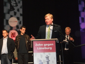 Das zumindest war das Ziel von Kaspaow, der mit seiner weltweit agierenden Chess Foundation Schach als Bildungsgut an die Schulen bringen will, und zu dem Schachevent „Zehn gegen Lüneburg“ am 22.09. nach Lüneburg gekommen war. Die Schirmherrschaft über die Veranstaltung hatte der Kultusminister von Niedersachsen Dr. Bernd Althusmann übernommen.