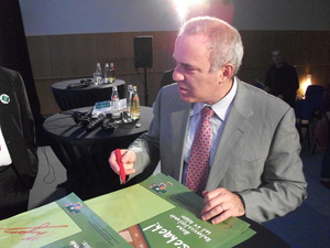 Für Kasparows Kampagne ist übrigens von Bedeutung, dass Lehrer und nicht Schachspieler den Sport unterrichten. An jeder Schule soll mindestens ein Lehrer Schach unterrichten können. Dies deckt sich mit den Vorstellungen der Deutschen Schachjugend und der Deutschen Schulschachstiftung, wie Kirsten Siebarth (DSJ) und Walter Rädler (Stiftung) im Rahmen der zweiten Podiumsrunde mit Kasparow erläuterten. In dieser Runde wurden Kasparow Schulschachinitiativen in Deutschland vorgestellt. Einige davon wie den Methodenkoffer für den Schachunterricht kannte er schon, da es in November letzten Jahres schon zu einem Treffen mit ihm in München gekommen war. Von dem Methodenkoffer hält Kasparow als Unterrichtsmaterial sehr viel und mit einigen der Methoden bringt er seiner Tochter derzeit das Schachspiel bei.