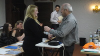 Am Abend standen die Ehrungen auf der Tagesornung. Wolfgang Clüsserath wurde mit der silbernen Ehrennadel der DSJ geehrt. Die Laudatio wurde von Lisa Molitor gehalten, die den „Wolfgang“, damit völlig überraschte. Er wurde für 35 Jahre Engagement im Schach geehrt. Von der Vereins- bis hin zur Landesebene in Rheinlandpfalz, mit 30 Jahren Vorsitzender der Landesschachjugend, war und ist er tätig. Er hoffte, dass dies kene Verabschiedung sei, er wolle ja noch weiter machen.