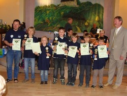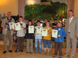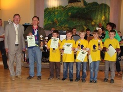 Zum sechsten Mal in Folge richtete die SG Blau-Weiß Stadtilm in der Kinder- und Jugenderholung Dittrichshütte die Deutschen Schulschachmeisterschaften der Grundschulen aus. 181 Kinder sowie über 100 Lehrer, Betreuer und Eltern waren vor Ort, um ihren Schützlingen Mut, Anerkennung und mitunter auch Trost auszusprechen. Vor der letzten Runde waren noch 5 Schulen im Titelkampf involviert. Die neunte und alles entscheidende Runde musste nun den Sieger ermitteln. Am 1. Tisch kämpfte die derzeitig führende Schule aus Kröllwitz gegen die St. Sebastian Schule aus Raesfeld (NRW). In schon relativ kurzer Zeit mussten die Sachsen-Anhaltiner eine herbe 3:1 Niederlage einstecken und somit auch die Hoffnung auf den Titel begraben. Die größte Spannung herrschte an den Tischen 2 und 3, denn hier mussten sich die Verfolger Weinböhla gegen Sömmerda und Grönauer Baum gegen Würzburg-Lengfeld behaupten. Beide Mannschaften gingen mit 21 Brettpunkten in das Rennen und mussten, um Deutscher Meister zu werden, maximale Brettpunkte erkämpfen. Hochkonzentriert und auch sehr aufgeregt saßen die kleinen Strategen am Brett. Nach 50 Minuten stand der Deutsche Meister 2011 fest. Mit einem 3,5:0,5 Sieg über die Lindenschule Sömmerda ging der Meistertitel verdient, wie im Vorjahr schon, nach Sachsen. Deutscher Meister 2011 wurde die Grundschule Weinböhla, die im gesamten Turnier mit ihrem zurückhaltendem Auftreten und ihrer fairen Spielweise allen Beteiligten sehr positiv auffiel. Mit dem Ergebnis von 2:2 sicherte sich die Schule am Grönauer Baum aus Lübeck den Titel des Vize-Meisters. Nur einen halben Brettpunkt weniger und somit Platz 3 errang die Grundschule Kröllwitz aus Sachsen-Anhalt. Die Siegerehrung nahm, wie in all den Vorjahren schon, Schirmherr der Veranstaltung und Landrat des Ilmkreises, Dr. Benno Kaufhold, vor. Nachdem die erstplatzierten 3 Mannschaften alle ihre Einzel- und Schulpokale erhielten, wurden weiterhin die Brettbesten und die Spieler des Ersatzspielerturnieres geehrt. Voller Stolz nahmen alle 36 Mannschaften ihren Mannschaftspokal entgegen und jeder der 181 Teilnehmer erfreute sich über einen Sachpreis und eine Urkunde. Folgende Ergebnisse an den Einzelbrettern wurden erzielt: Brettbester Brett 1; Martin Kololli (Lübeck), Brett 2: Jannick Walter (GS Kehl), Brett 3: Rares Enache und Brett 4: Tim Kunath. Ein sensationeller Doppelerfolg ging im Ersatzspielerturnier nach Weinböhla. Während der Siegerehrung bedankte sich Turnierleiterin Kirsten Siebarth bei allen Teilnehmern, Betreuern und mitreisenden Erwachsenen, die dafür sorgten, dass allen Anwesenden diese Meisterschaft aufgrund ihrer gigantischen sowie positiven Stimmung ein bleibendes Erlebnis für alle Beteiligten wurde. Ein riesengroßes Dankeschön geht an das gesamte Team der SG Blau-Weiß Stadtilm, bei denen sich sehr viele Mannschaften über diese phantastische Ausrichtung bedankt haben. Über 25 wunderschön gestaltete Bilder der teilnehmenden Schulen zum Thema: „DSM 2011- wie wars?“ wurden im Foyer des Spielsaales an einer Pinnwand aufgehangen. Somit bewiesen die kleinen Künstler, dass sie nicht nur auf den 64 Feldern sondern auch mit Farbe und Papier sehr kreativ sind. Alle Bilder sind auf der Homepage in der Galerie anzuschauen.