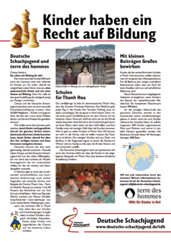 Und unter dieser Überschrift steht auch die aktuelle Wandzeitung zur Partnerschaft. Dort findet Ihr anschauliche Informationen über das Projekt von terre des hommes im vietnamesischen Muong Lat, für das die Schachjugend wirbt und Spenden sammelt.